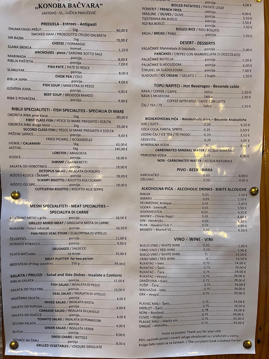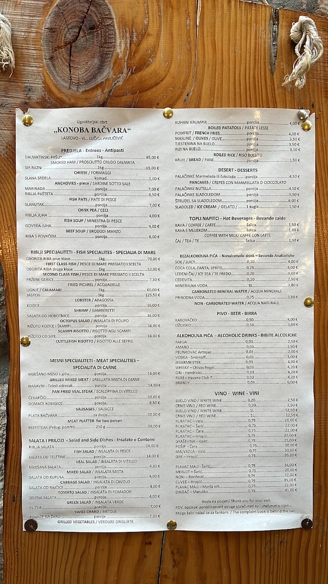 Nestled in the picturesque Lastovo, Konoba Bacvara stands out for its authentic culinary experience. This charming restaurant offers a menu brimming with fresh, locally sourced ingredients, where almost all the fish comes straight from the owner’s son, the waiter. Guests rave about the expertly grilled fish and delightful side dishes, complemented by an impressive selection of local wines.